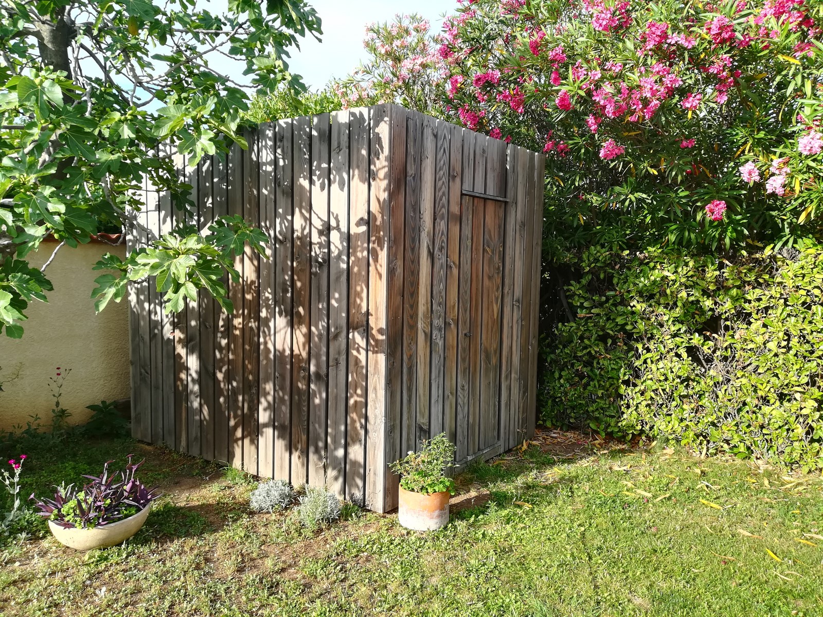 Les structure en bois type abris, appentis, carport, cabanon, qui sont des espace de rangement très utiles.Les Dispositifs occultant bois comme les palissades, clôture bois, claustra bois, brise vue qui offrent de l'intimité.